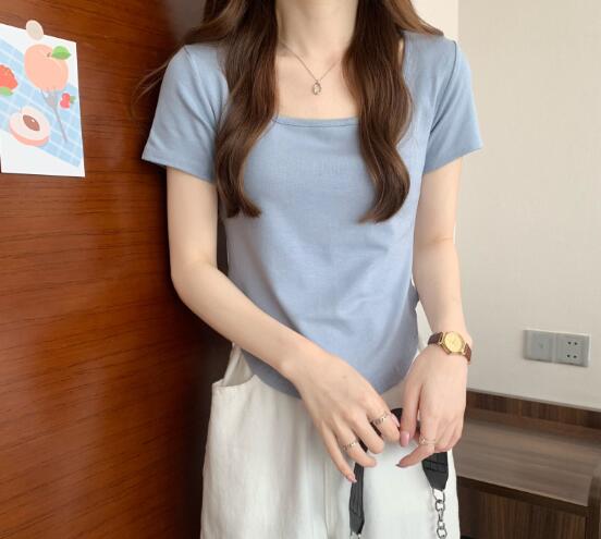 韓国風 chic トップス Tシャツ 半袖 夏ファッション ショート無地 カジュアル