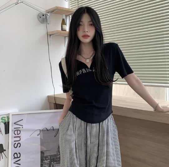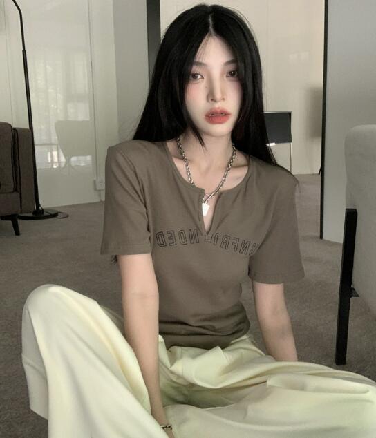 新作 レディース トップス Tシャツ ブラウス 半袖 細身スタイル ショート vネック