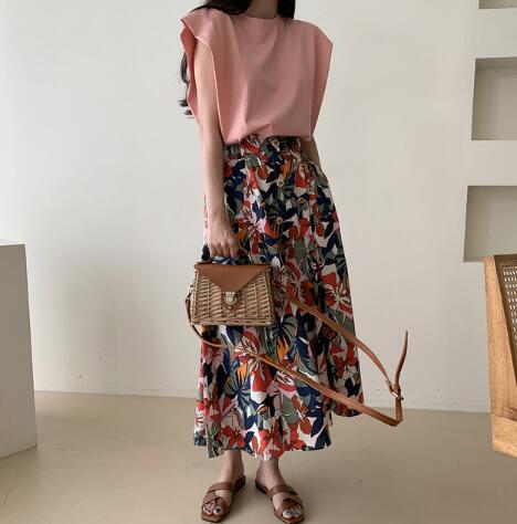 韓国風 chic トップス Tシャツ スカート 夏ファッション ノースリーブ レディース