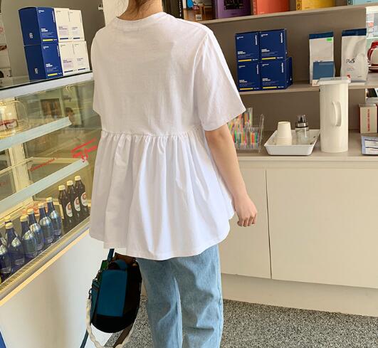 夏ファッション トップス Tシャツ 半袖 シンプル Aライン ドッキング