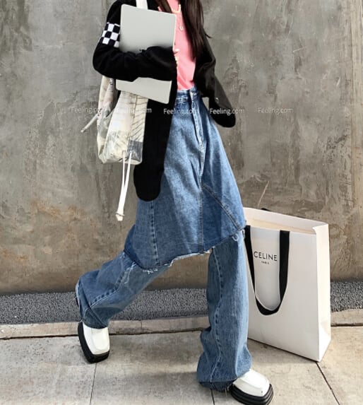 春秋新作 レディース ボトムス ズボン パンツ デニム 重ね着風