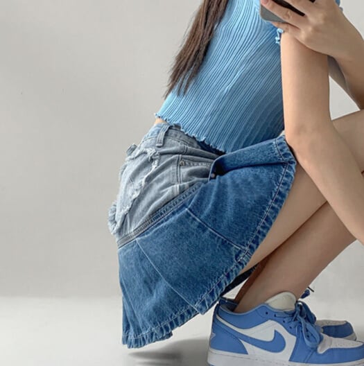 秋冬新作 ボトムス スカート ハイウェスト Aライン プリーツスカート デニム
