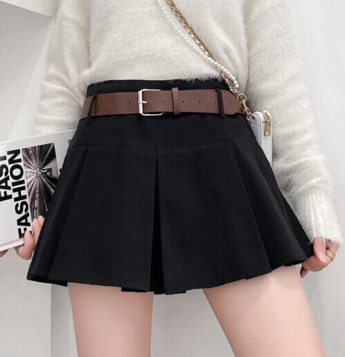 秋冬新作 ボトムス スカート プリーツスカート ハイウェスト Aライン ベルト付き