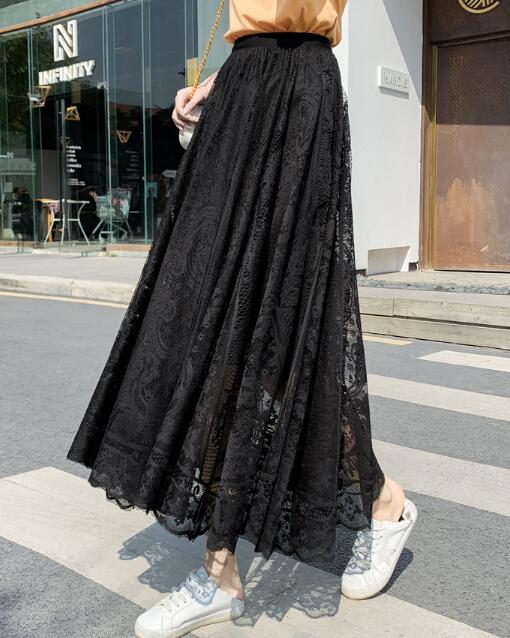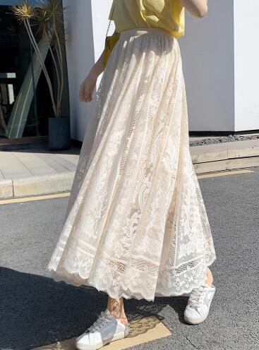 ファッション トップス ボトムス スカート ロング丈 レーススカート Aライン