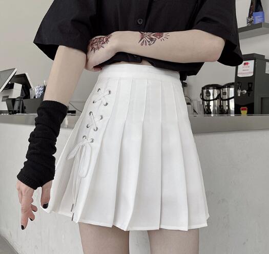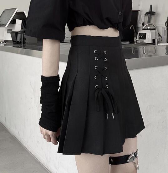 ガーリッシュ 黒 プリーツスカート 夏ファッション Aライン レトロ ハイウェストスカート