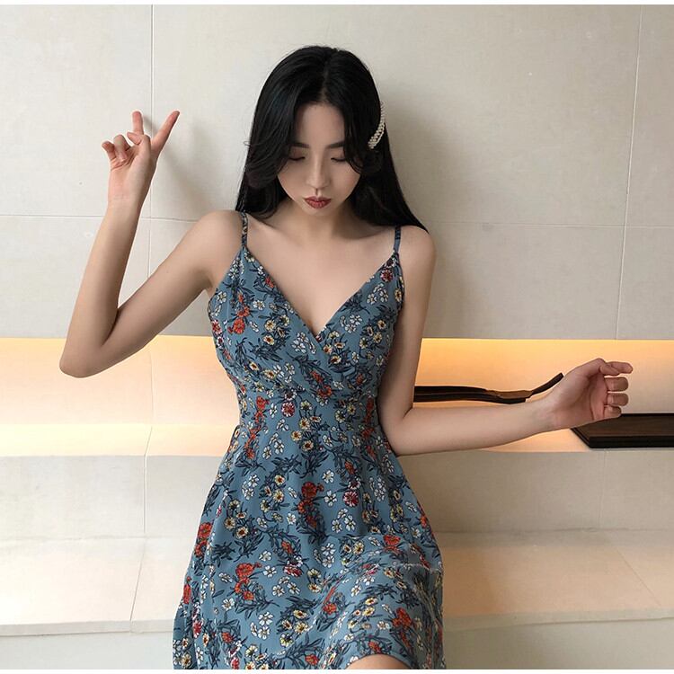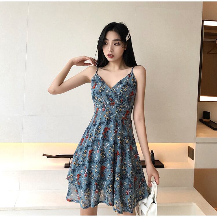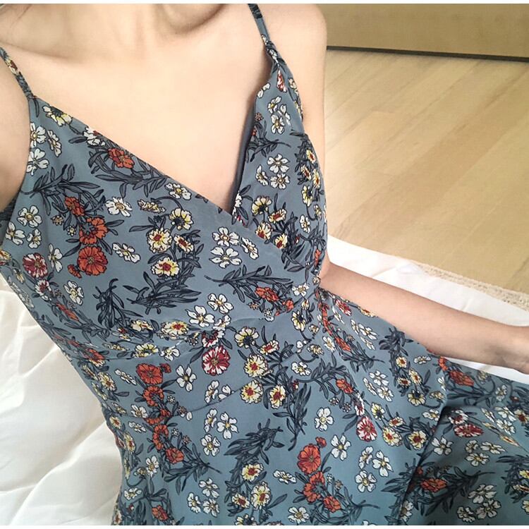 早い者勝ち フローラル シフォン ミニスカート Vネック