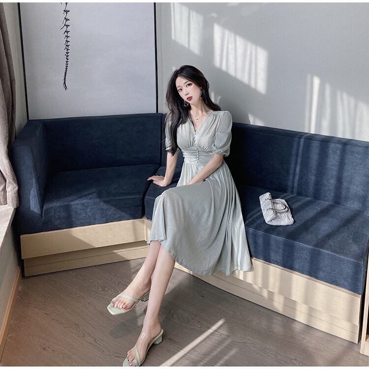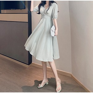 韓国ファッション 半袖 百掛け 中・長セクション Vネック