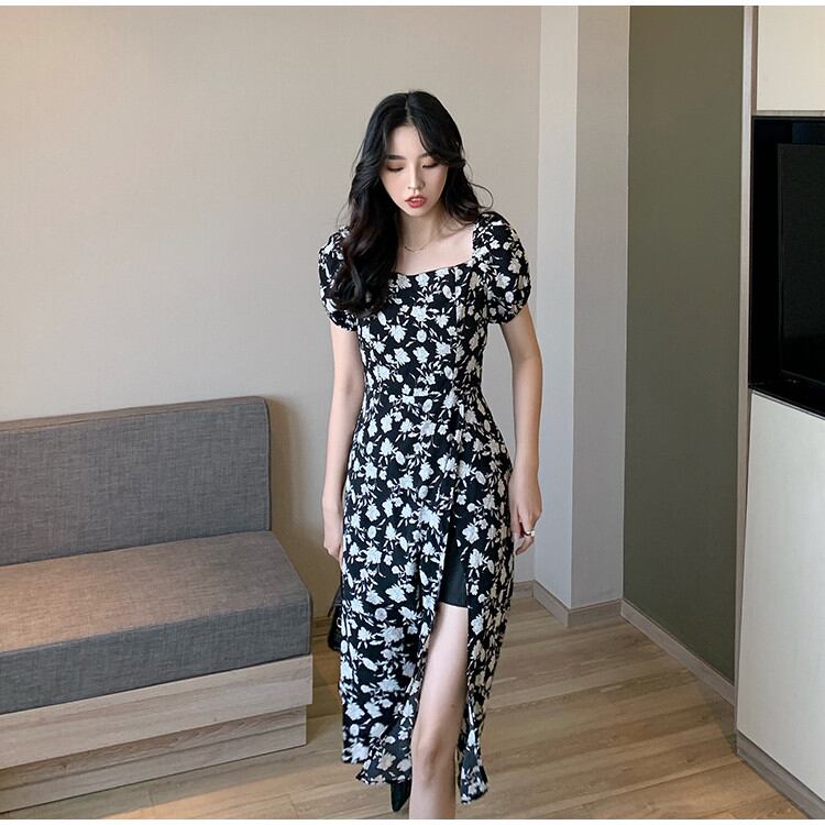 ブームが巻き起こる 早い者勝ち 半袖 スクエアネック ロングスカート ブロークンフラワー スプリット