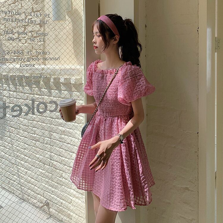 新作 可愛い パフスリーブ 薄手 ワンピース オフショルダー