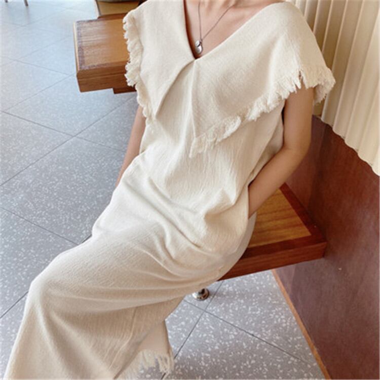 韓国ファッション 袖なし ゆったりする タッセル 人形の襟 ワンビース