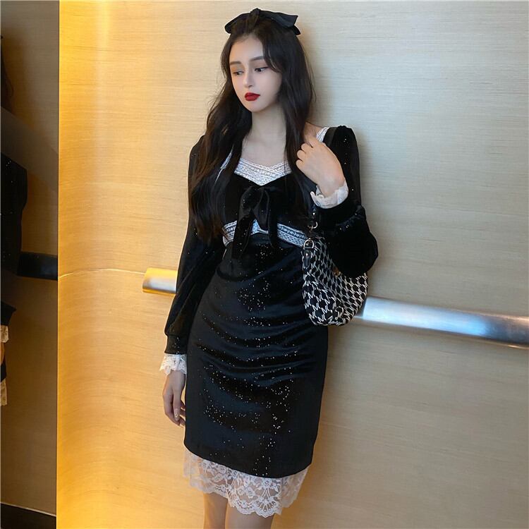 キレイめもカジュアルもOK 早い者勝ち 蝶結び 長袖 ワンビース レース 縫付 快適である 気高い