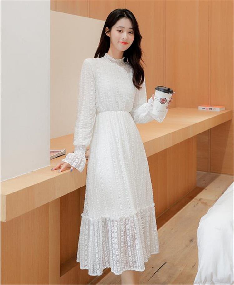 INSスタイル フレンチスタイル 伸縮性ウエスト レース 中・長セクション