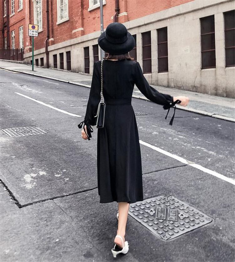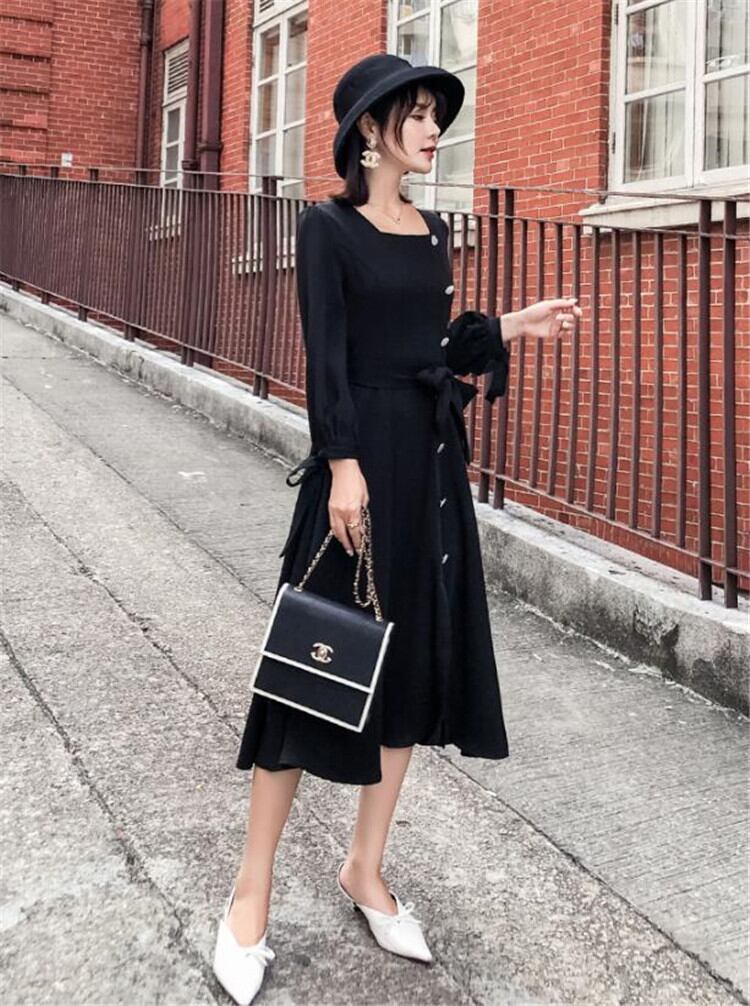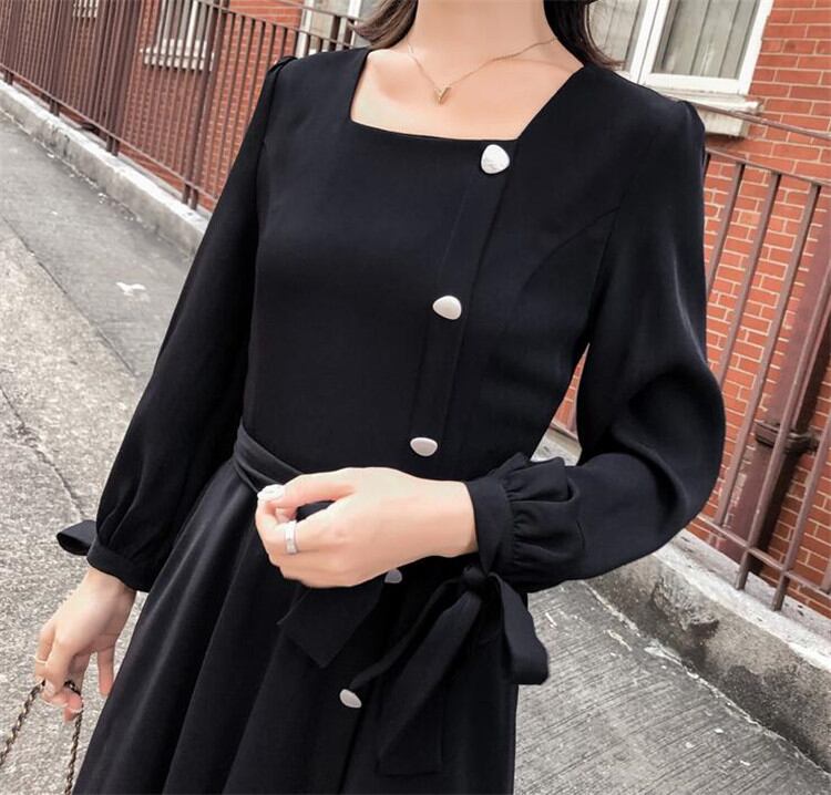エレガント リトルブラックドレス 単体ボタン ドレス 通勤 OL 卒業式 入学式