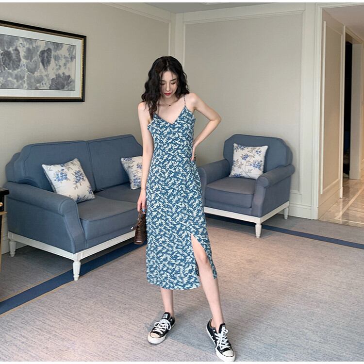 INSスタイル フローラル キャミワンピ スリット ジェントルスタイル Vネック