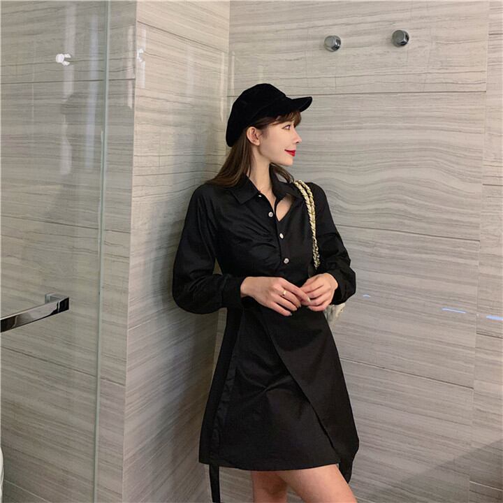 スリムフィット 中・長セクション カジュアル ウエスト スリム 長袖 ワンピース ファッション ミニスカート