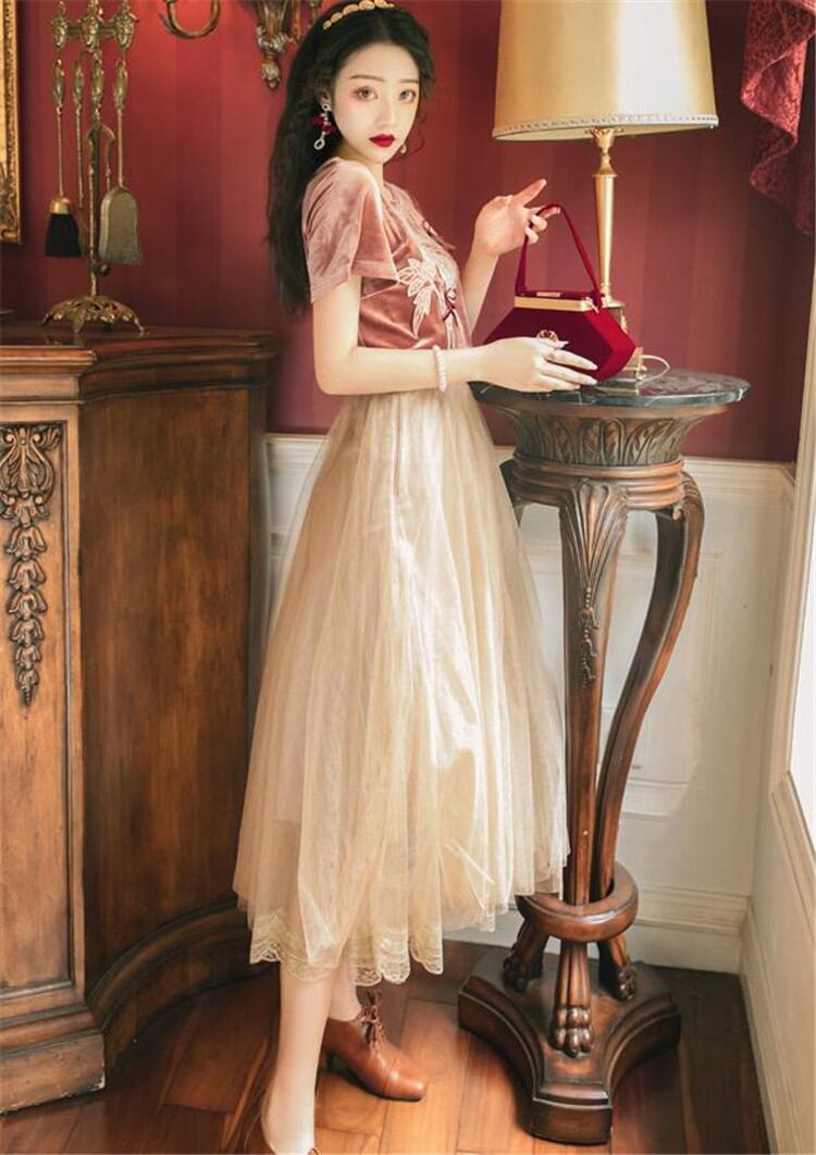 新作 フレンチ ヴィンテージ 気質 セット ネッティングスカート ツーピース