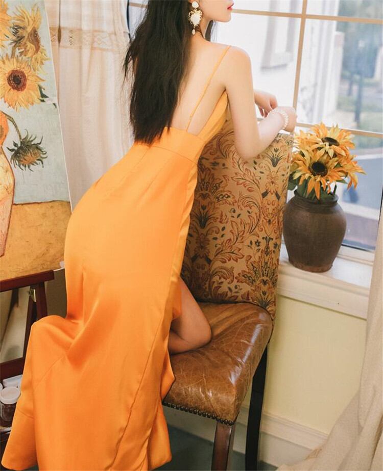 新作 背透けて サスペンダーワンピース フィッシュテールスカート