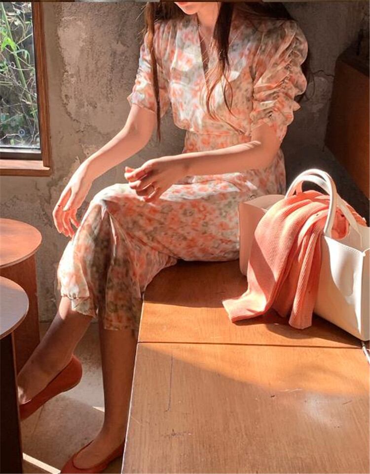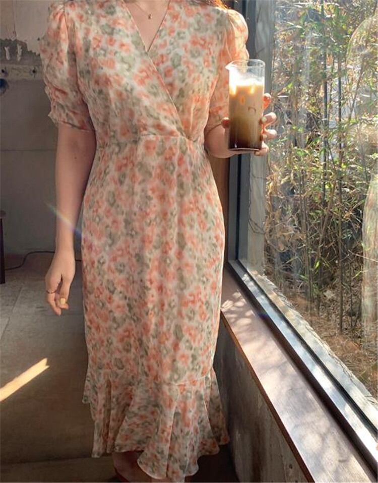 ワンピース 百掛け カジュアル 大人気 花柄 Vネック スリム 中・長セクション エレガント