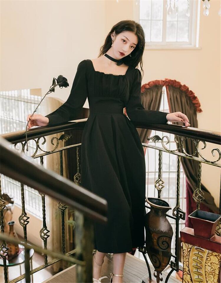 満場の注目を集めて登場する フレンチ ヴィンテージ スクエアネック トレンド ヘップバーン風