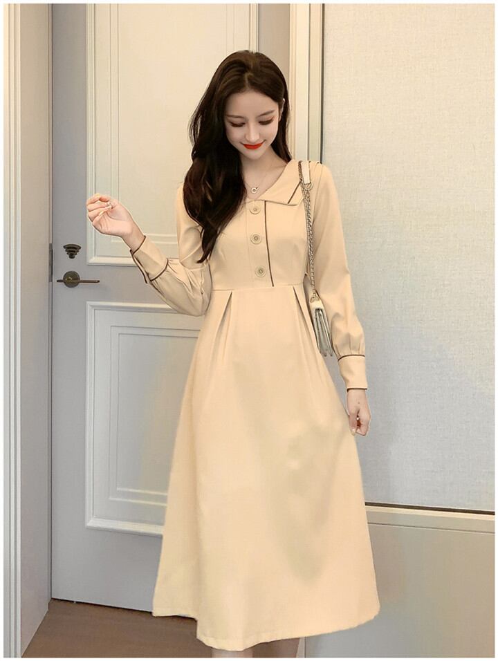 秋 新作 ウエスト スリム 気質 エレガント カジュアル 中・長セクション シンプル ワンピース