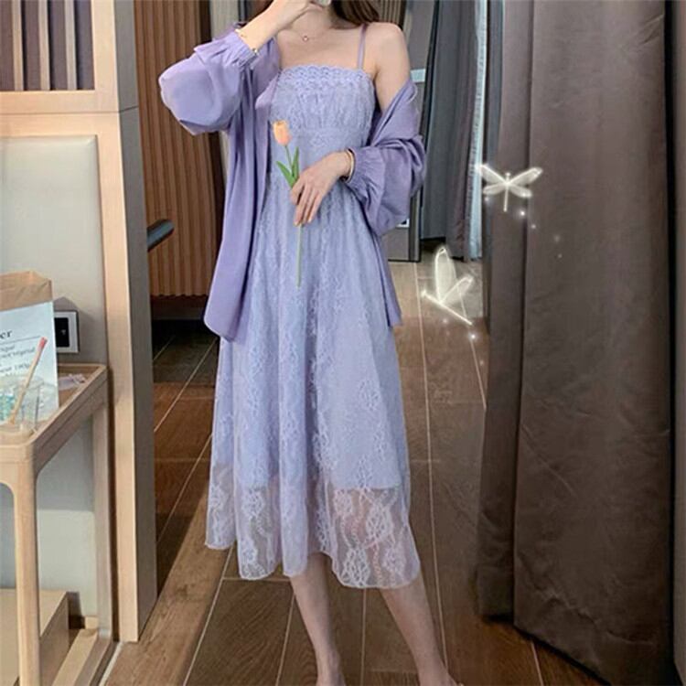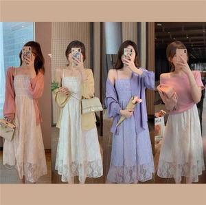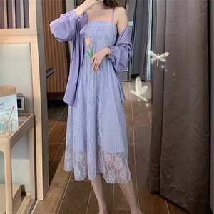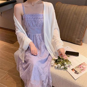 【 高品質の製品】 夏 新作 レース キャミ・ベアワンビス フレンチ ワンピース 薄手 ロングスカート