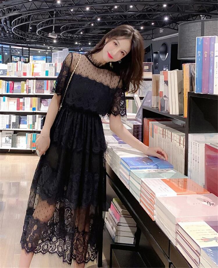 夏 新作 大人気 中・長セクション 半袖 レース ワンピース ハイウエスト