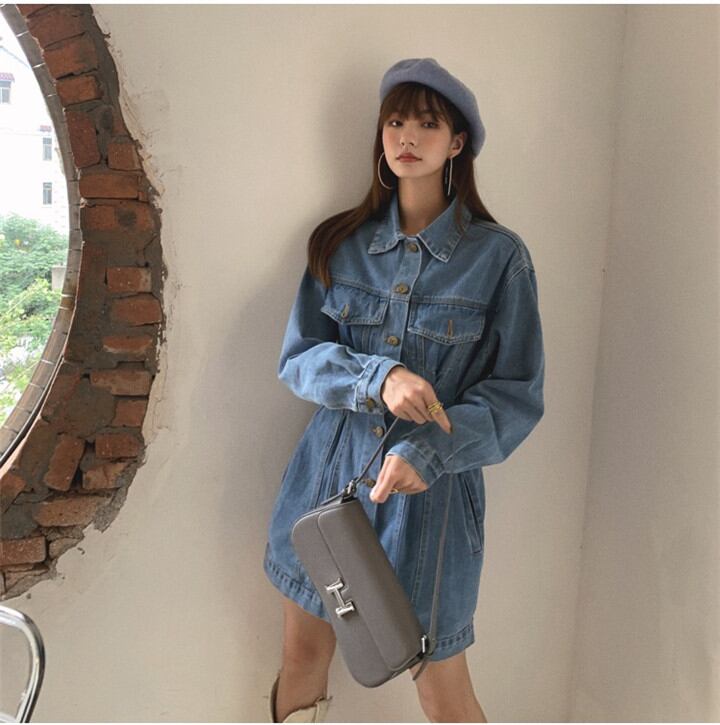 レトロ 腰を括る デザインセンス デニムワンビース おしゃれな 長袖 スリムフィット