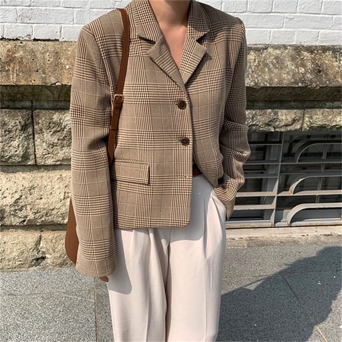 大人っぽくシックな印象 韓国 秋 カジュアル スーツ ファッション 気質 カレッジ風 短いスタイル コート