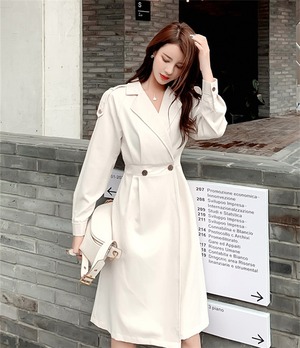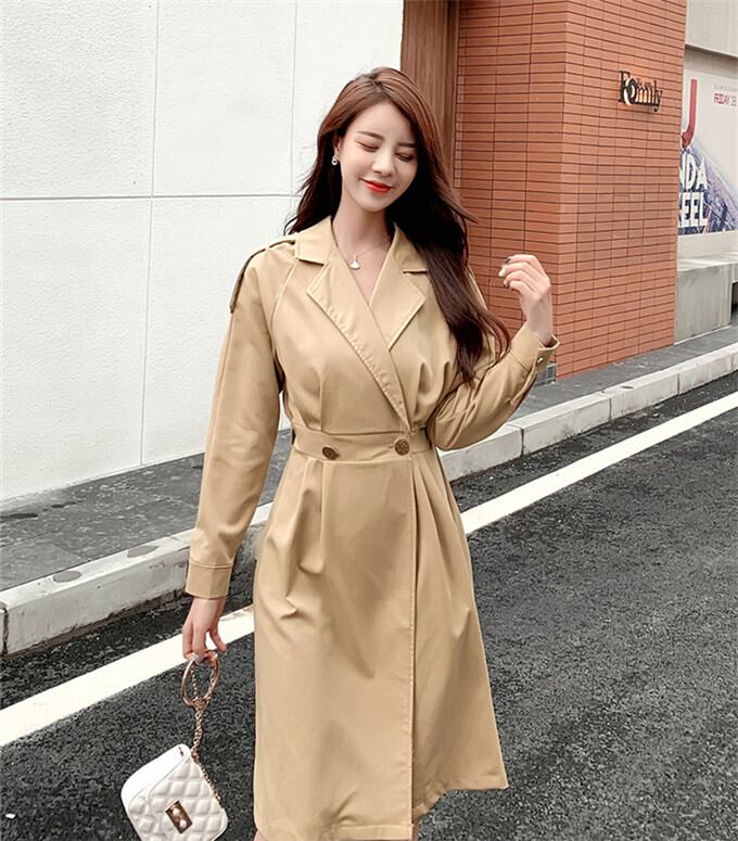 素敵なデザイン 初秋 レトロ ダブルブレスト トレンチコート カジュアル スリム 気質 エレガント コート