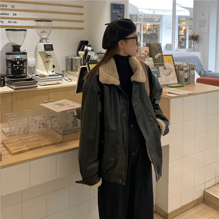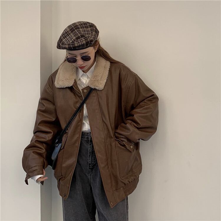 韓国ファッション レトロ INS ぬいぐるみ 革のジャケット ジャケットフライドストリートコート
