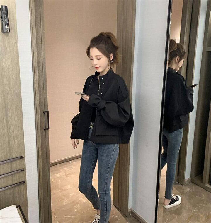 韓国 秋 レザーカラー ジャケット カレッジ風 レジャー 冬 原宿BF風 短いスタイル コート