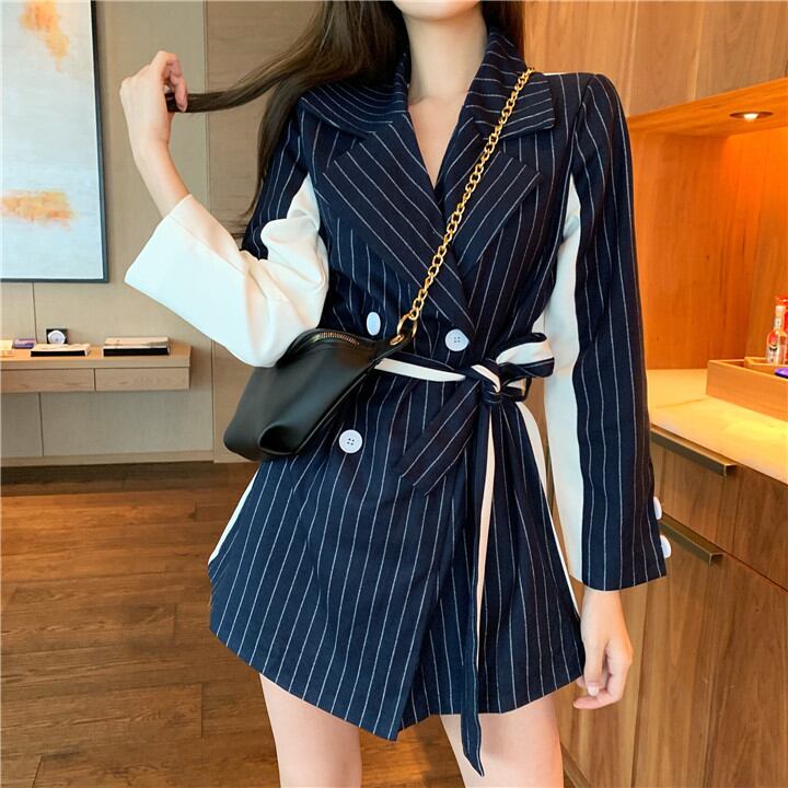 おしゃれの必需品 秋 レジャー ストライプ 縫付 中・長セクション ウエスト スーツ スリム コート 冬 気質