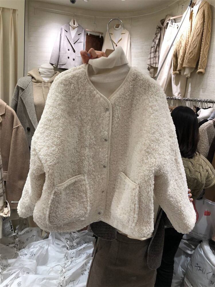簡約 ゆったりする ダブルポケット短いスタイルコート厚手