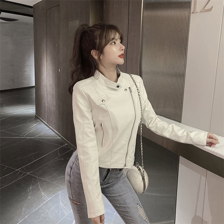 韓国ファッションリトルセクシー ホルタースーツカラー スリム ショートオールマッチ puレザージャケット