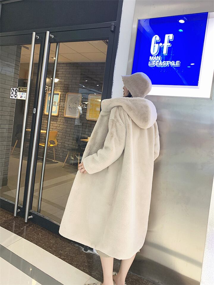 毛皮のコート 模造水 フェイクファー 中・長セクション 大きいサイズ フード付きジャケット