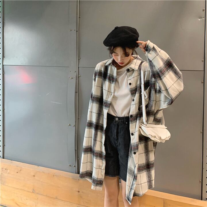 中・長セクション シャツ チェック柄 コート小さい新鮮な 単体ボタン シャツ