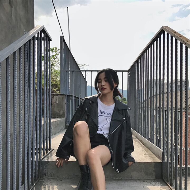 レザー 短いスタイル コート 薄手 ゆったりする 原宿BF風 ジャケット カジュアル