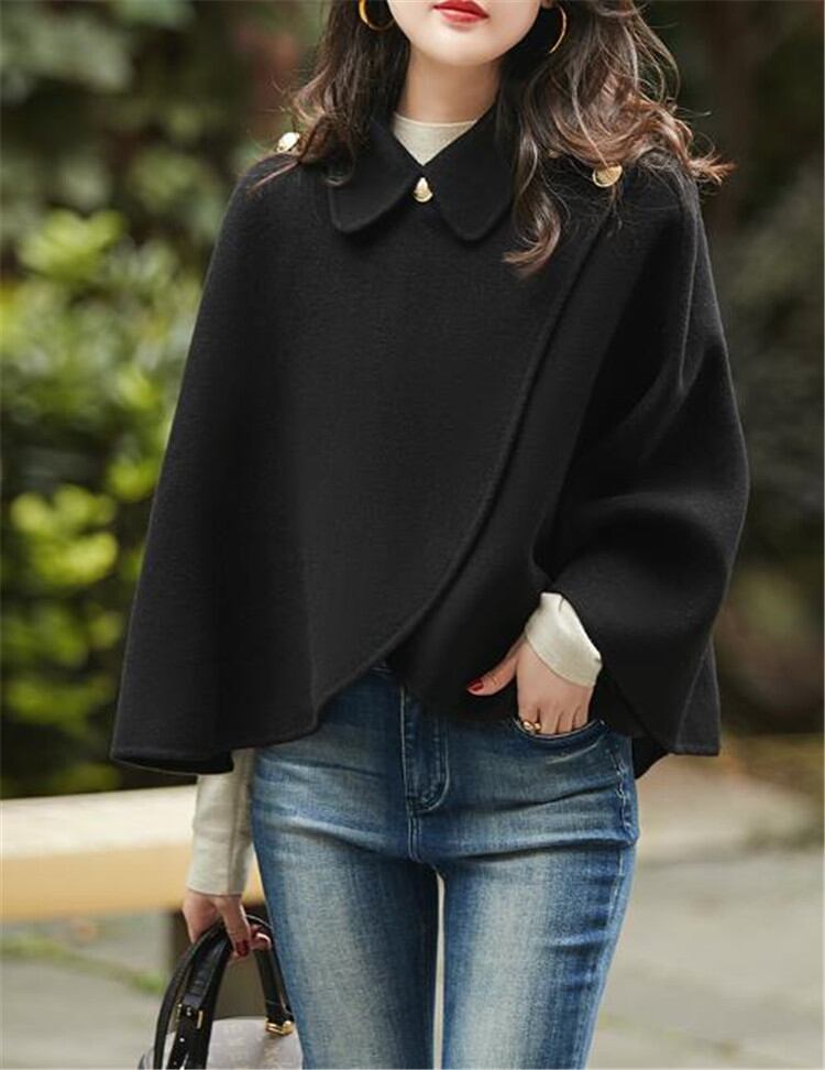 秋冬 新作 韓国版 女性 短いスタイル ポンチョ ストール エレガント 両面 ウールコート