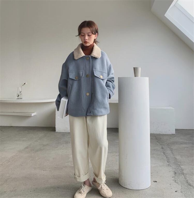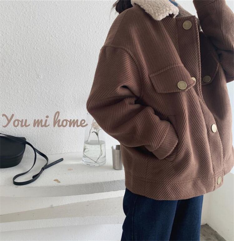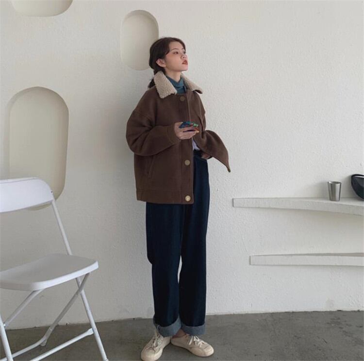 韓国 秋冬/新作/上品映え/子羊の毛/長袖/チェスターコート/スリム/レトロ/怠惰な風/縫付