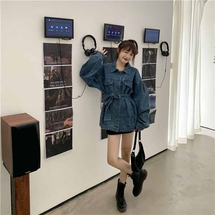 早い者勝ち コート 中・長セクション デニム ギャザリング おしゃれな レトロ
