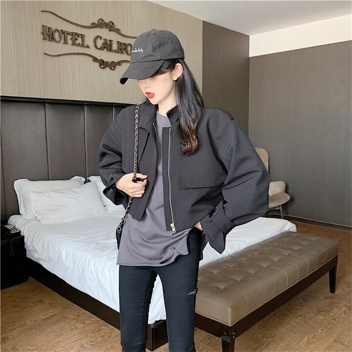 香港スタイル 韓国 スリム 原宿BF風 秋 スポーツスタイル 短いスタイル コート トップス