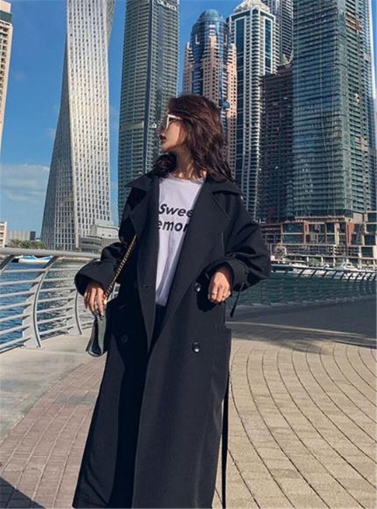 通勤する 女性 腰を括る 個性 快適である トレンチコート 中・長セクション コート