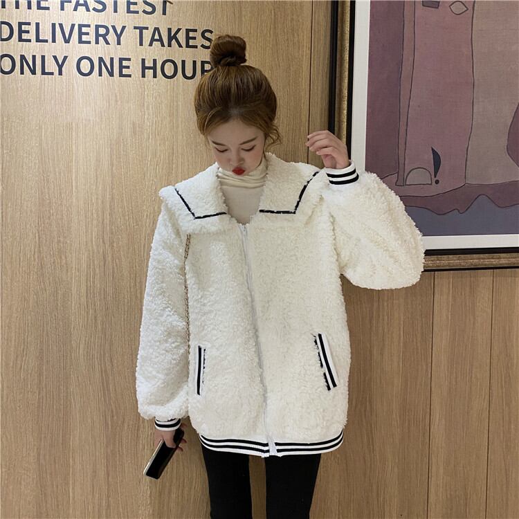 韓国版ゆったりするチェスターコート学生 ジッパー 可愛いラペル 厚手