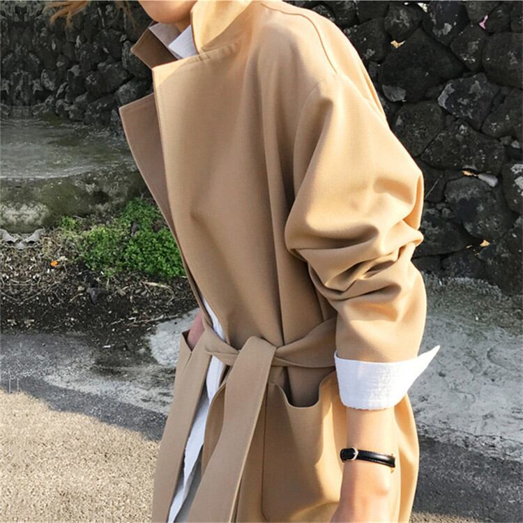 韓国ファッション スプリット コート 中・長セクション ハイウエスト スタンドカラー