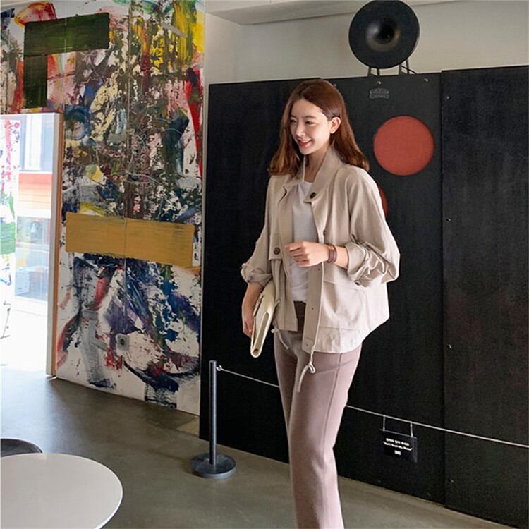 韓国ファッション ポケット ジャケット コート 短いスタイル ゆったりする