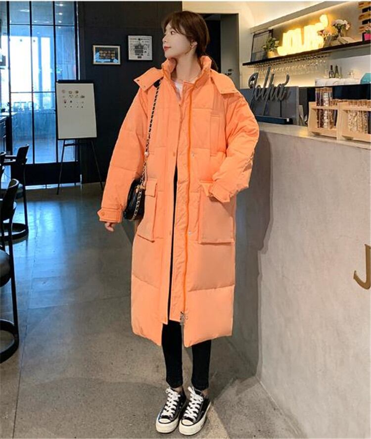 韓国ファッションコードゆったりする パッド入りジャケットフード付き毛皮の襟 お出かけ中・長セクション