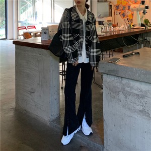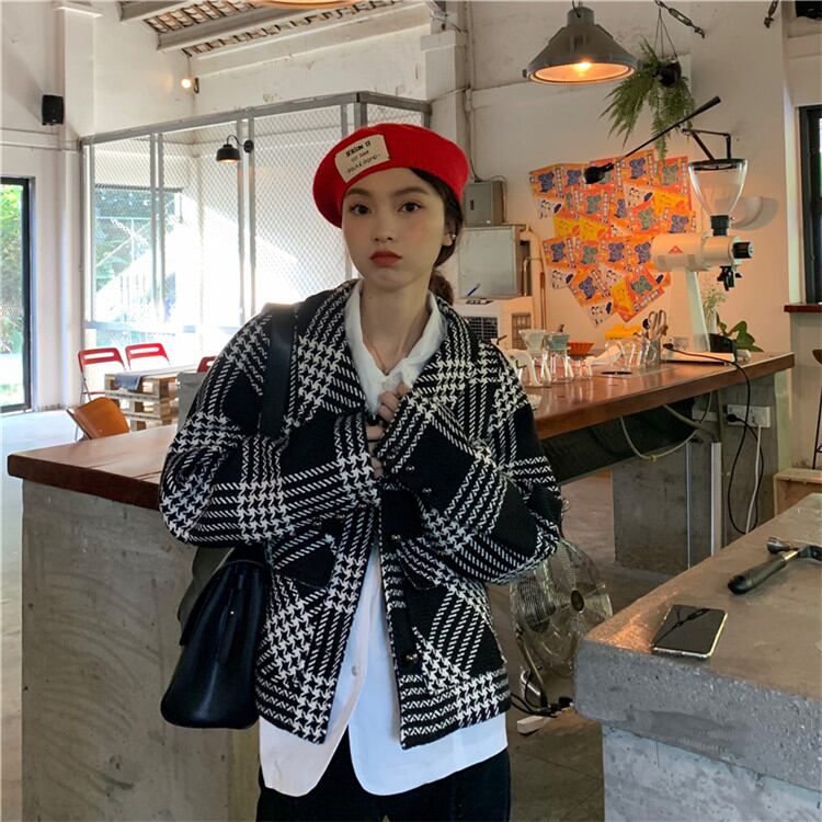 韓国ファッション 単体ボタン チェック柄 スリム ウール 短いスタイル