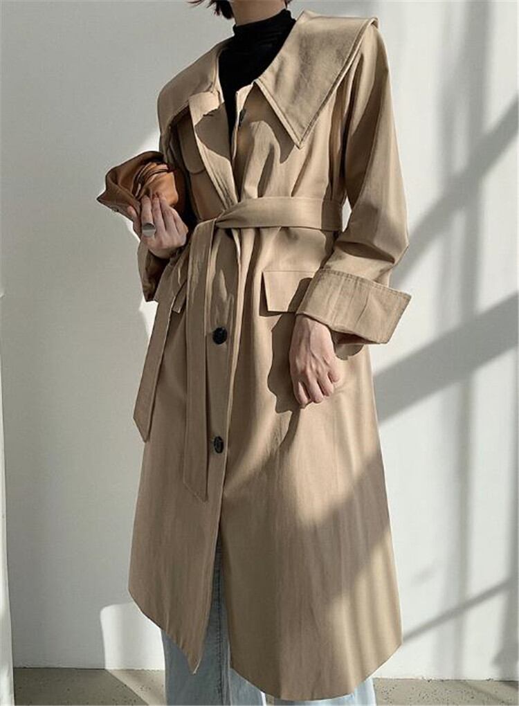 韓国ファッション 蓮の葉つば ポンチョ トレンチコート 中・長セクション