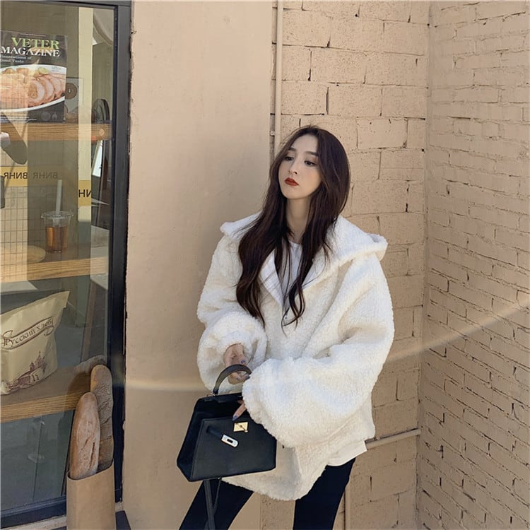 こなれ感のある上級コーデが一瞬で完成 早い者勝ち ラムウール フード付き 大人気 コート sweet系