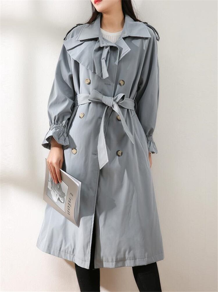 INSスタイル ハイエンド ダブルボタン スーツネック ミドル丈 ホーンスリーブ 腰を括る トレンチコート